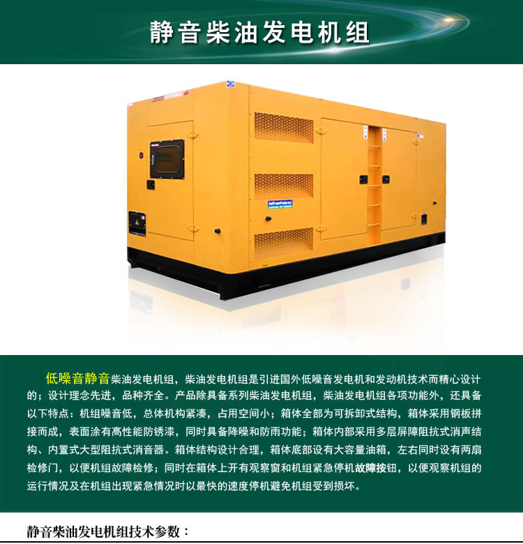 | JY-400 | 上柴及進口機組 | 儀表型、四保護型、自動化型 | 4700*2100*2450 | 750 | 2300 | 75DB(A) |